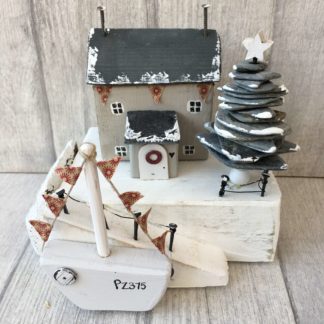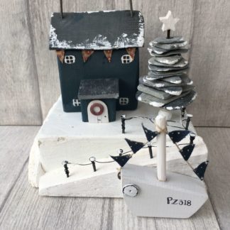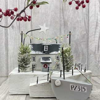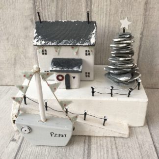 Christmas Harbour Scene Blue Cottage – Slate Tree