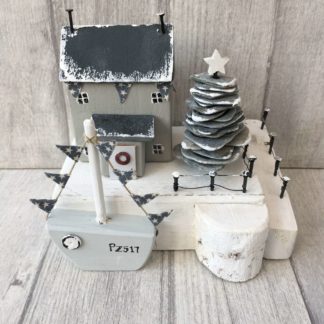 Christmas Harbour Scene Taupe Cottage – Slate Tree