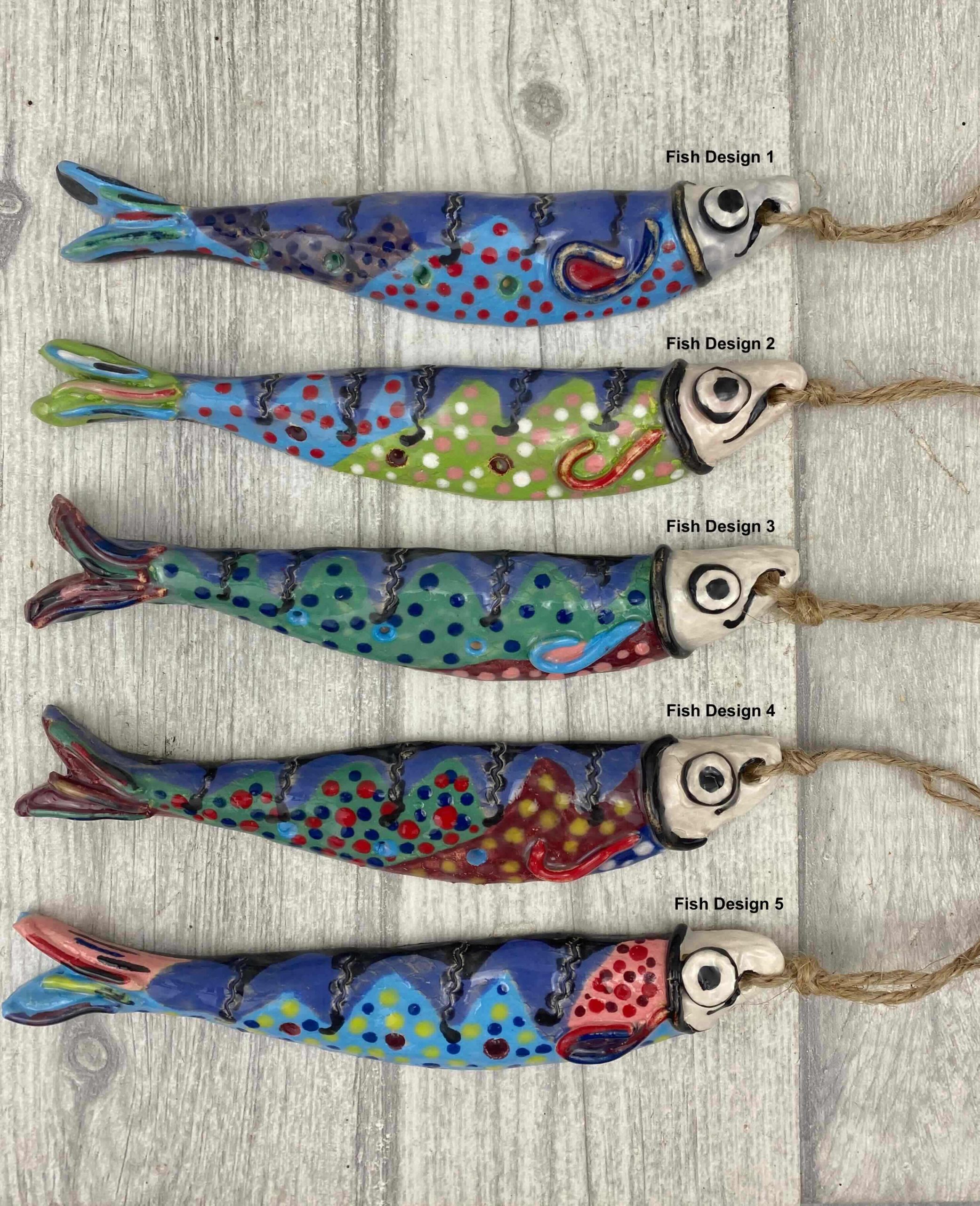 Made in Cornwall – these gorgeous colourful fish from the famous Stargazey Pie – depicted by the Artist as Wall art or a mini hanger, have now jumped into life as their own small Fishee Fun hangers.