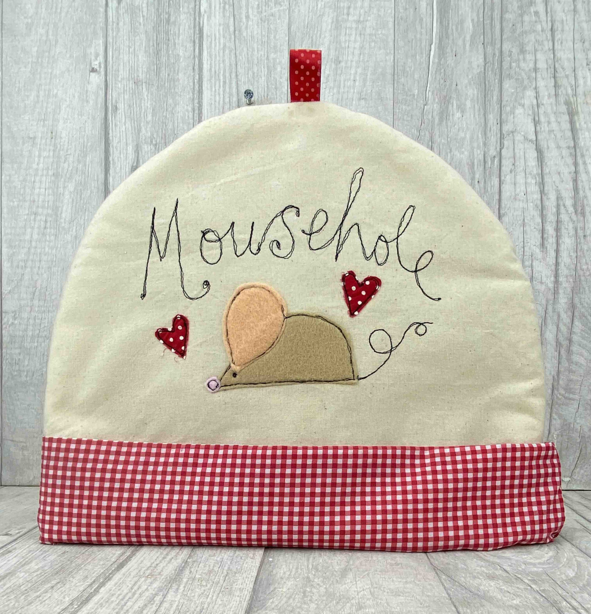 This lovely large handmade Tea Cosy features a lovely little Mouse with a red check band at bottom. Personalised as Mousehole, but if you wish to have another personalisation of a place or person please put this in the notes at checkout and we will arrange this with the Artist for you.