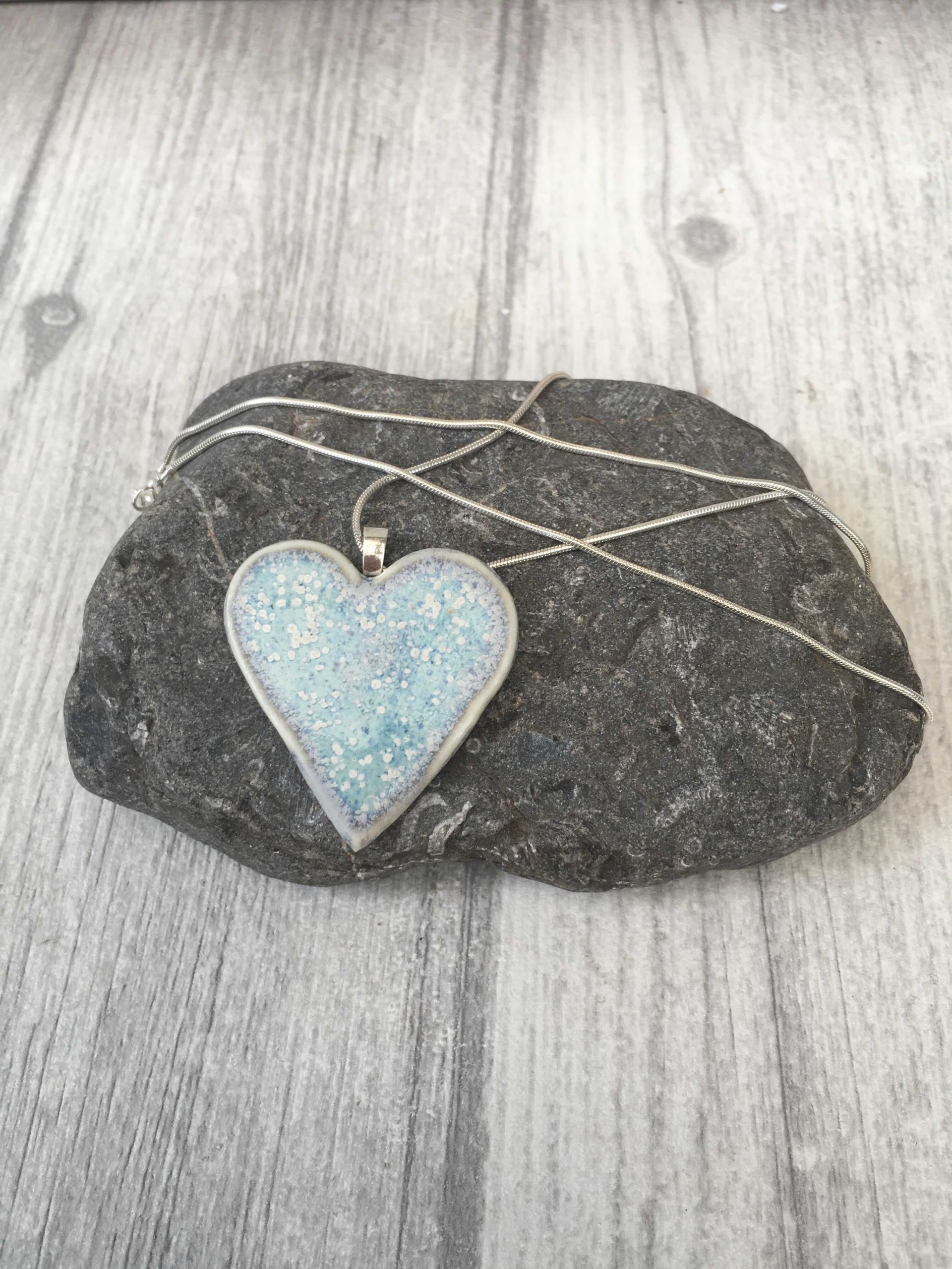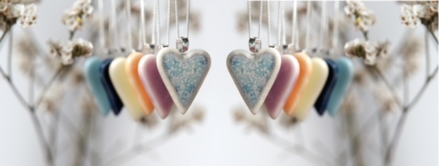 Ceramic Sterling Silver Jewellery – Beautifully Designed and Handmade in Cornwall. If your chosen piece is not in stock, it will be made to order so please allow 7-14 days. This large Heart ceramic design is perfect for those wanting a lovely statement coloured necklace.