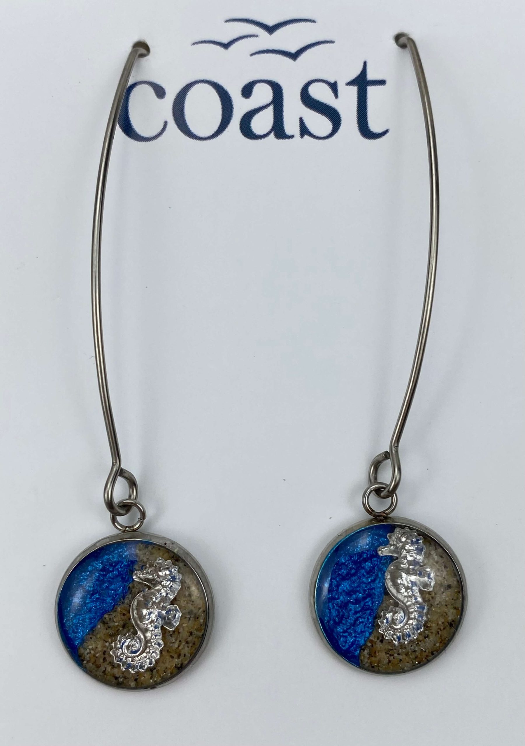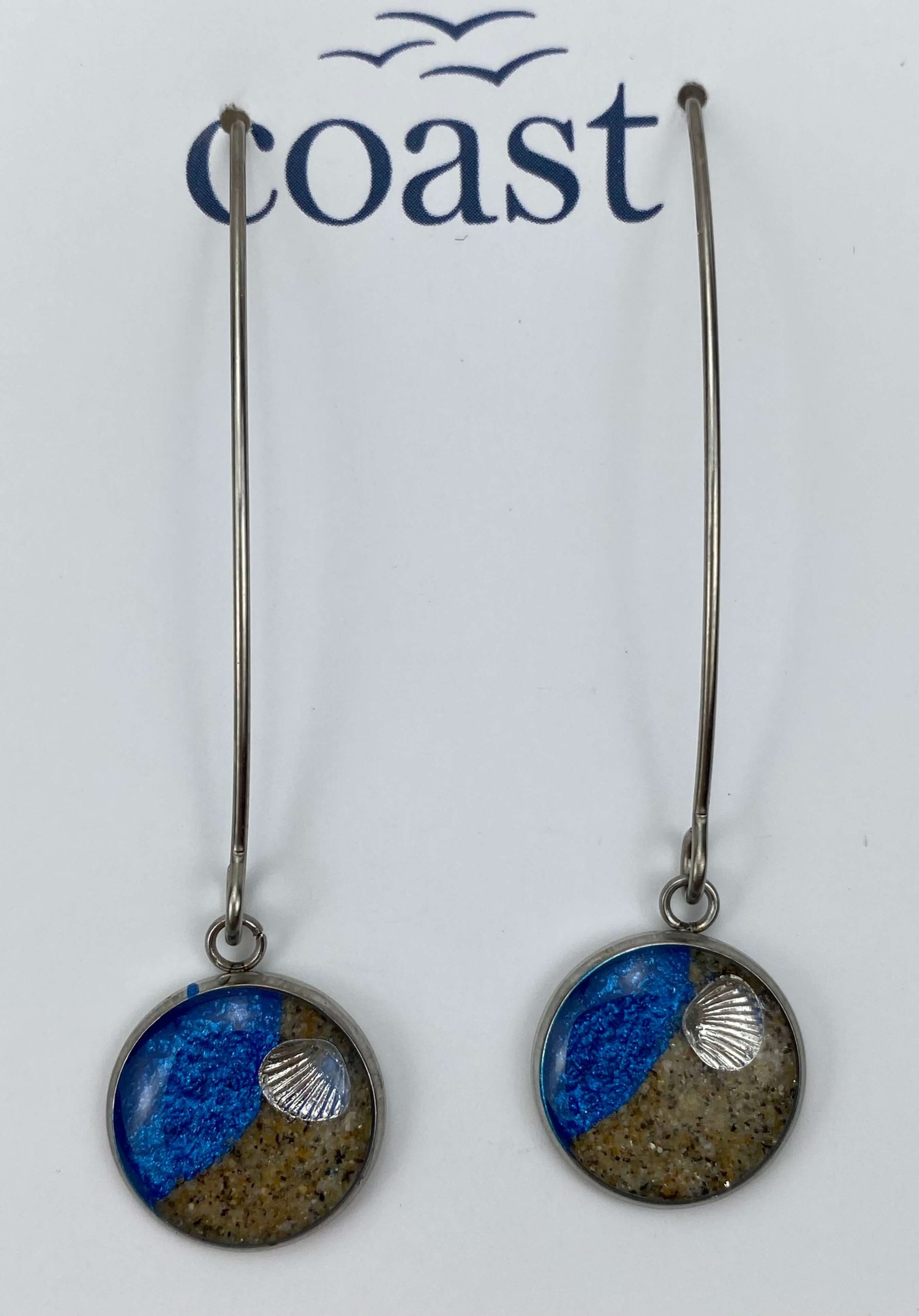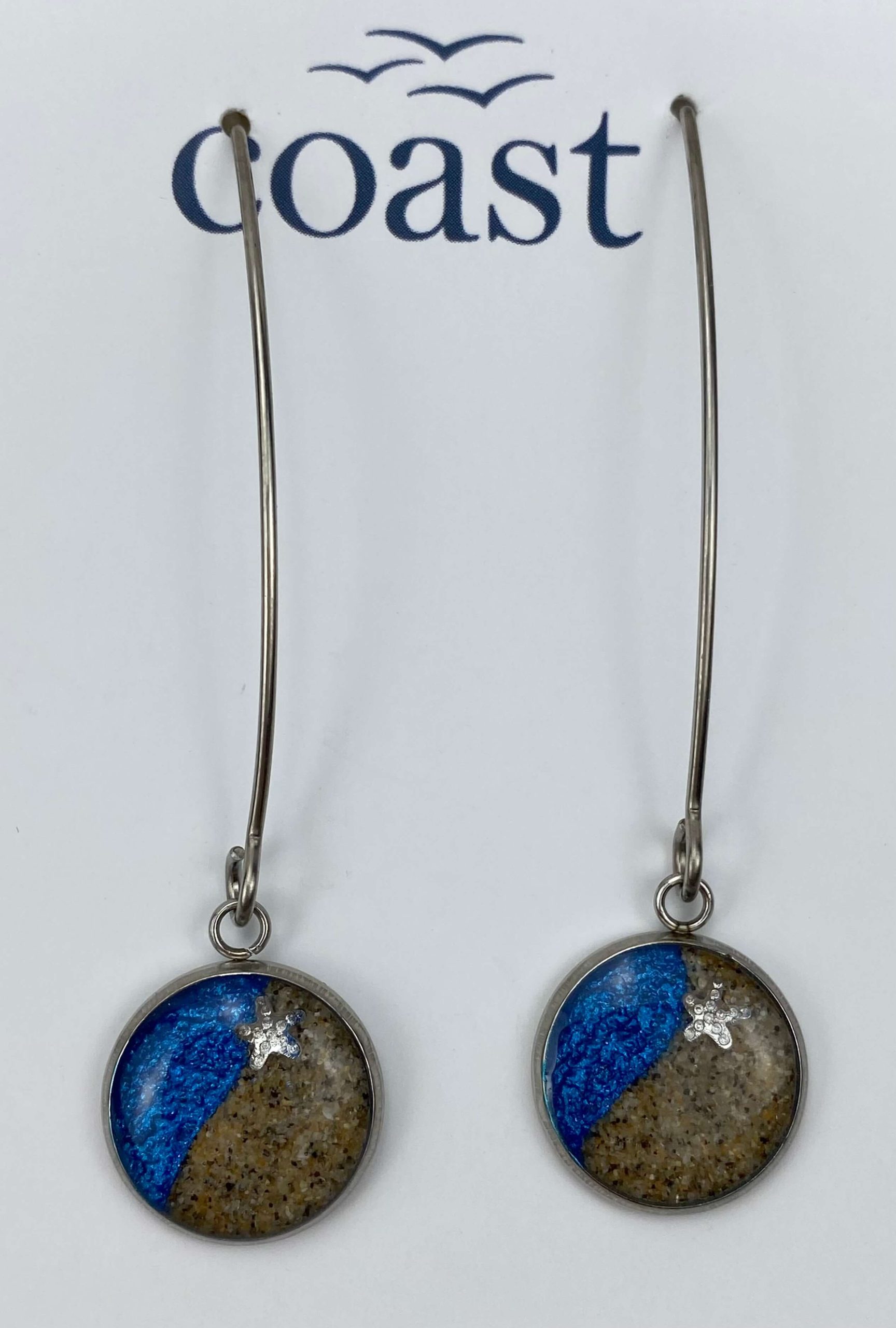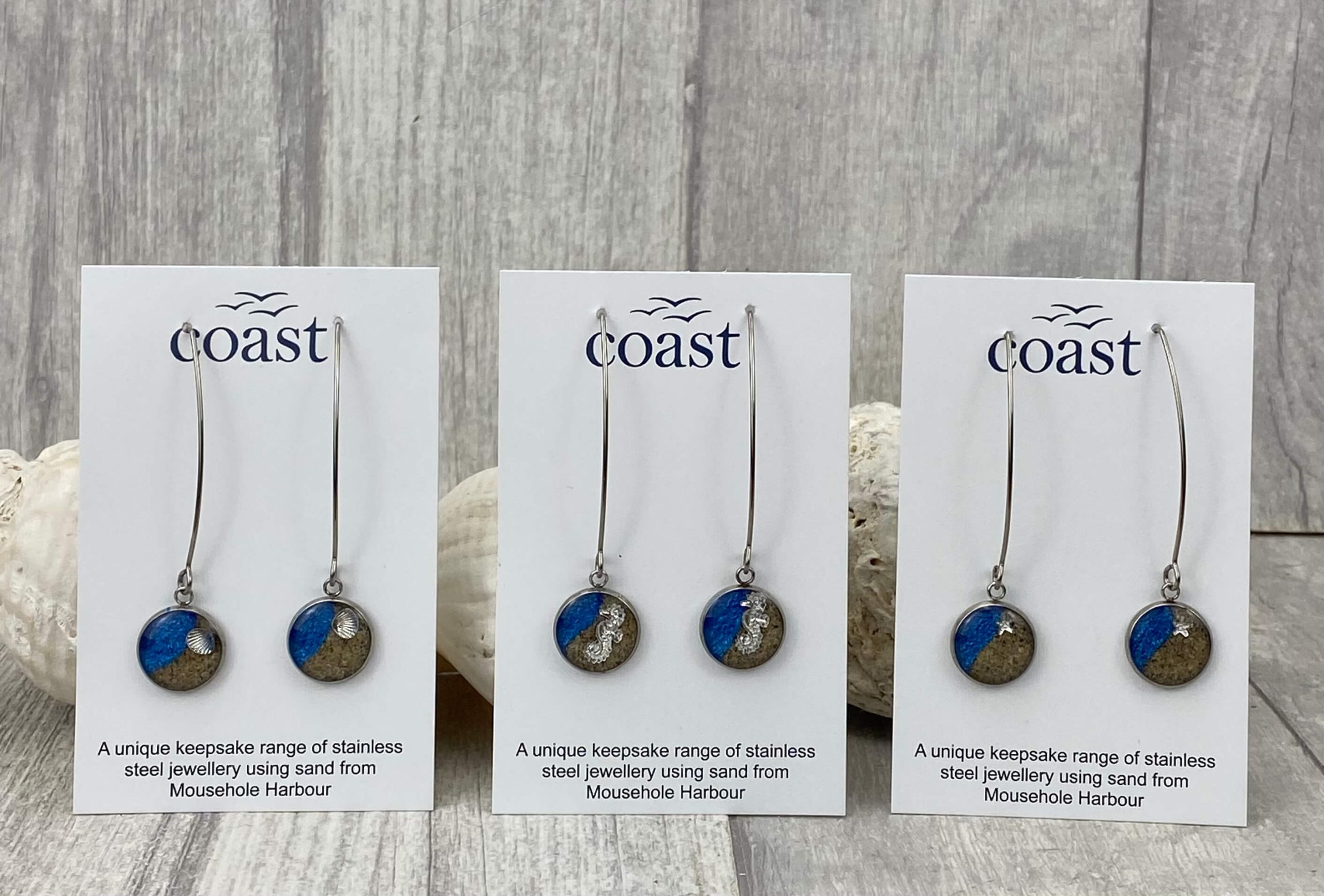 These beautiful handmade Cornish earrings are made with hypoallergenic stainless steel.  They contain sand from our beautiful harbour here in Mousehole and are mixed with resin – making them an extra special gift for someone…. or yourself!