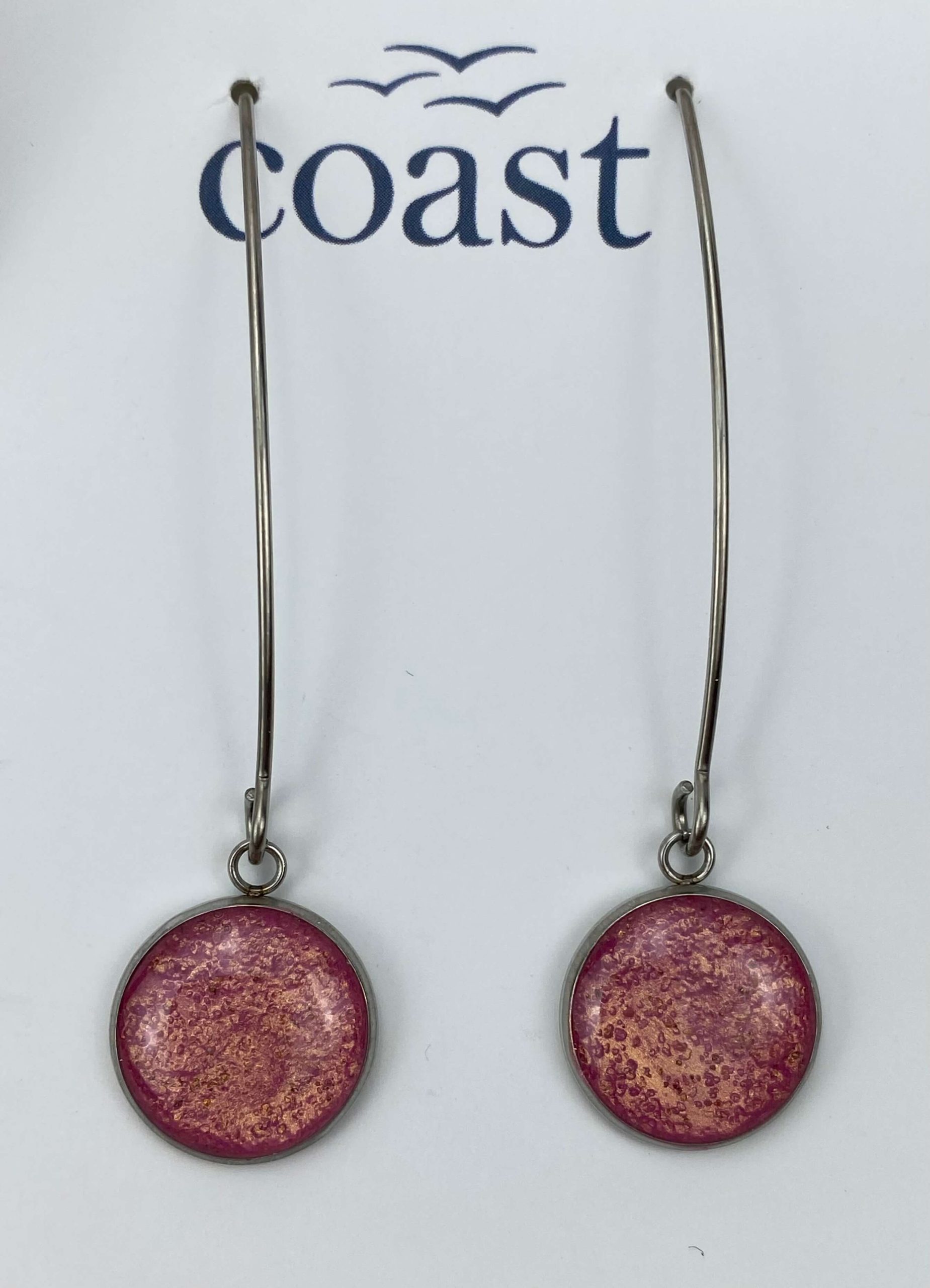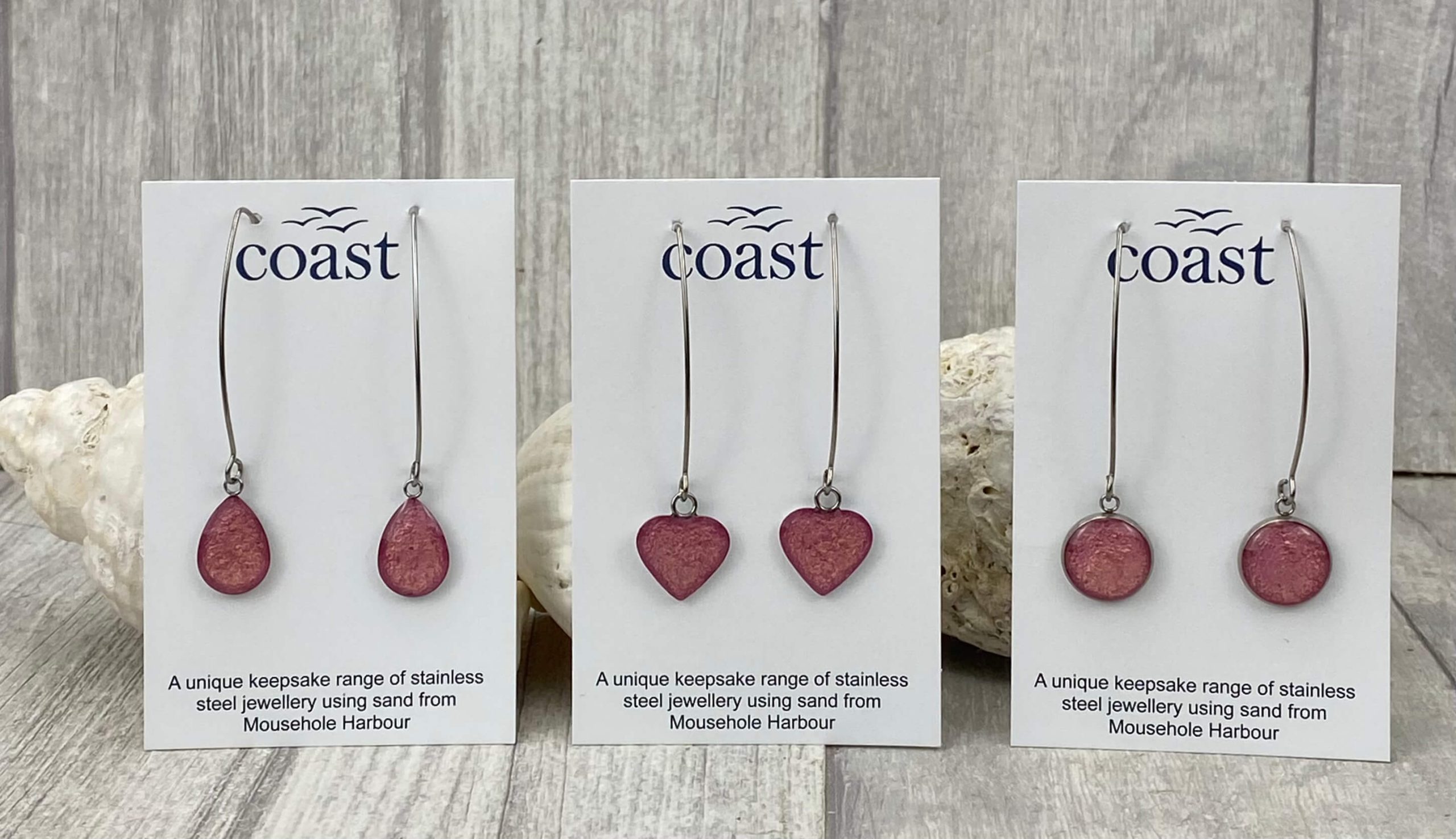 These beautiful handmade Cornish earrings are made with hypoallergenic stainless steel.  They contain sand from our beautiful harbour here in Mousehole and are mixed with resin – making them an extra special gift for someone…. or yourself!